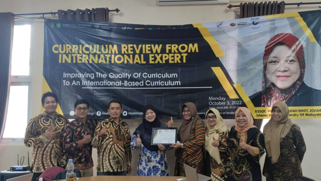 Fakultas Ekonomi UIN Maulana Malik Ibrahim Malang melakukan evaluasi kurikulum yang selama ini diajarkan dengan reviewer Dr. Fuadah Binti Johari, Associate Professor dari University Sains Islam Malaysia. Evaluasi kurikulum ini dilakukan sebagai upaya standarisasi kompetensi capaian pembelajaran berskala internasional. Evaluasi kurikulum dihadiri oleh Dekan beserta jajarannya, serta Ketua dan Sekretaris