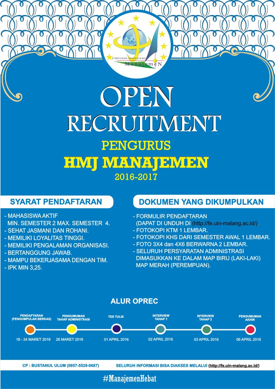 HMJ Manajemen proudly present Open Recruitment. Bagi yang ingin bergabung silahkan download informasinya di bawah ini :