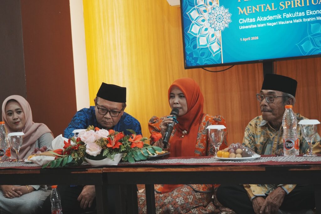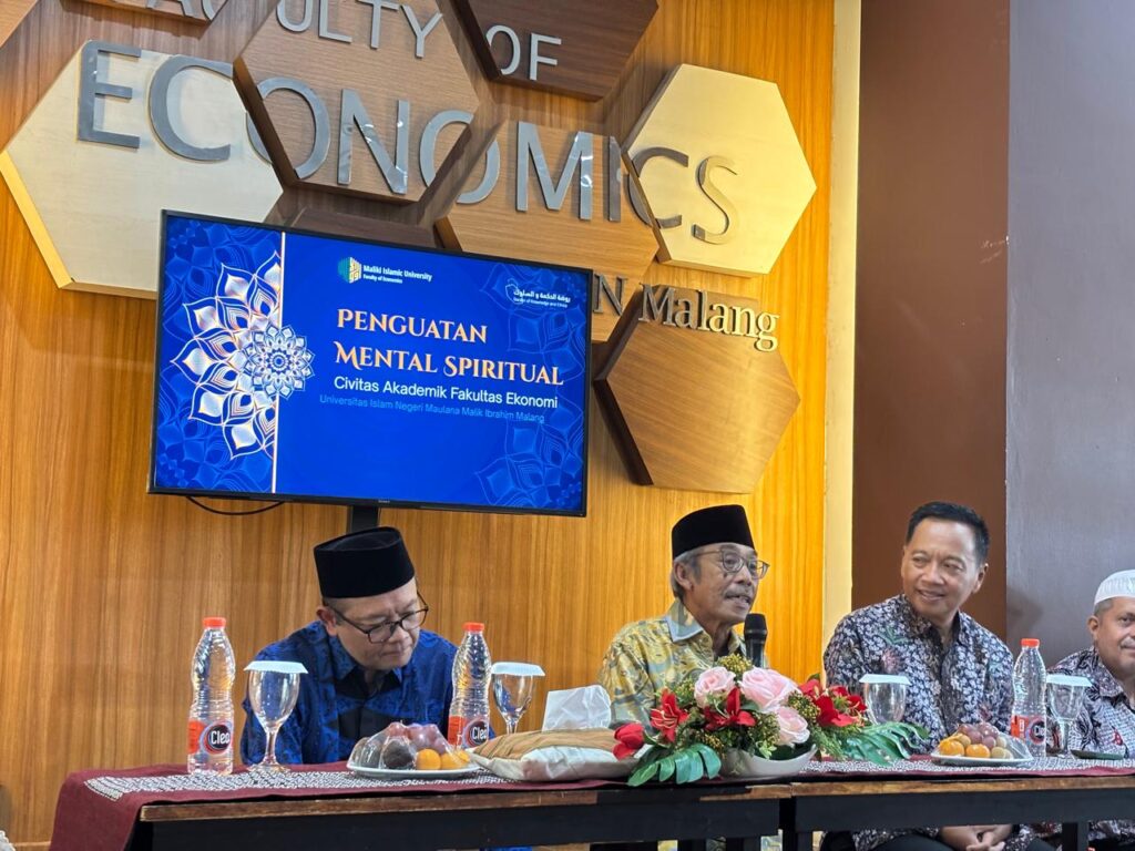 Suasana khidmat menyelimuti Lobi Lantai 1 Gedung Megawati Fakultas Ekonomi UIN Maulana Malik Ibrahim Malang saat Prof. Dr. H. A. Muhtadi Ridwan, M.Ag., memberikan tausiyah dalam agenda Halal Bihalal, Rabu (01/04). Kehadiran sosok yang akrab disapa Abah Muhtadi ini membawa warna tersendiri, layaknya seorang ayah yang tengah memberikan wejangan kepada