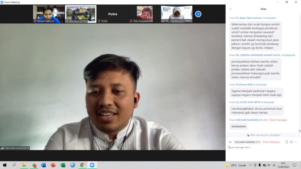 Rabu (15/9) HMJ Manajemen melanjutkan acara Future Management Training 2021 hari ke-2 dengan agenda materi yang cukup menantang karena terkesan berbobot yaitu Digitalpreneur dan SDGs (Sustainable Development Goals). Materi yang disampaikan pada hari ke 2 ini adalah kelanjutan materi pada hari pertama yakni mengenai potensi diri dan pengenalan lingkungan manajemen.
